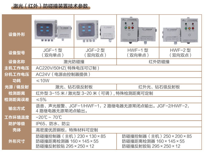 激光(紅外)防碰撞裝置技術參數 瀏覽:1385